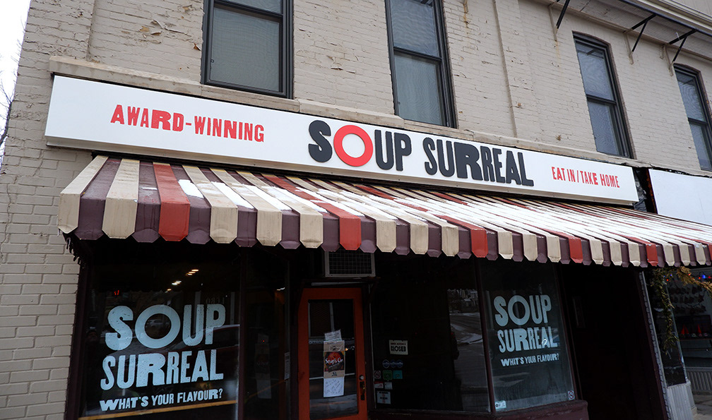 Soup Surreal is an expert at all things served in a bowl. Their inventive recipes are delightfully surprising and their menu is always expanding—they just needed a visual identity and informational materials to convey it. They now have shopping list rack cards with their full offerings for in store and pop-ups, loyalty stamp cards, a clear display of their fresh daily soups for customers to order from, and an eye-catching store front.